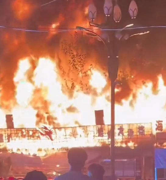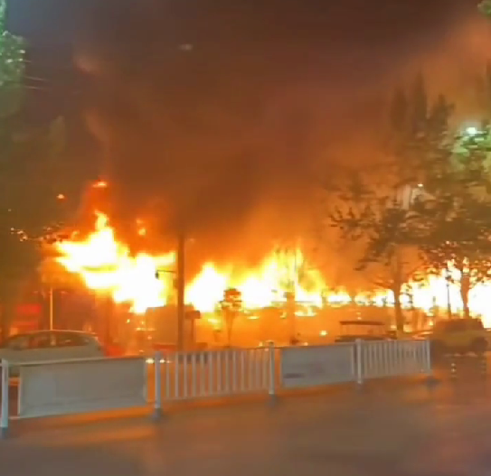 4月19日晚,河南周口有多名网友发布视频称,川汇区一夜市突发大火,现场火势凶猛,火苗冲起达到数米之高。